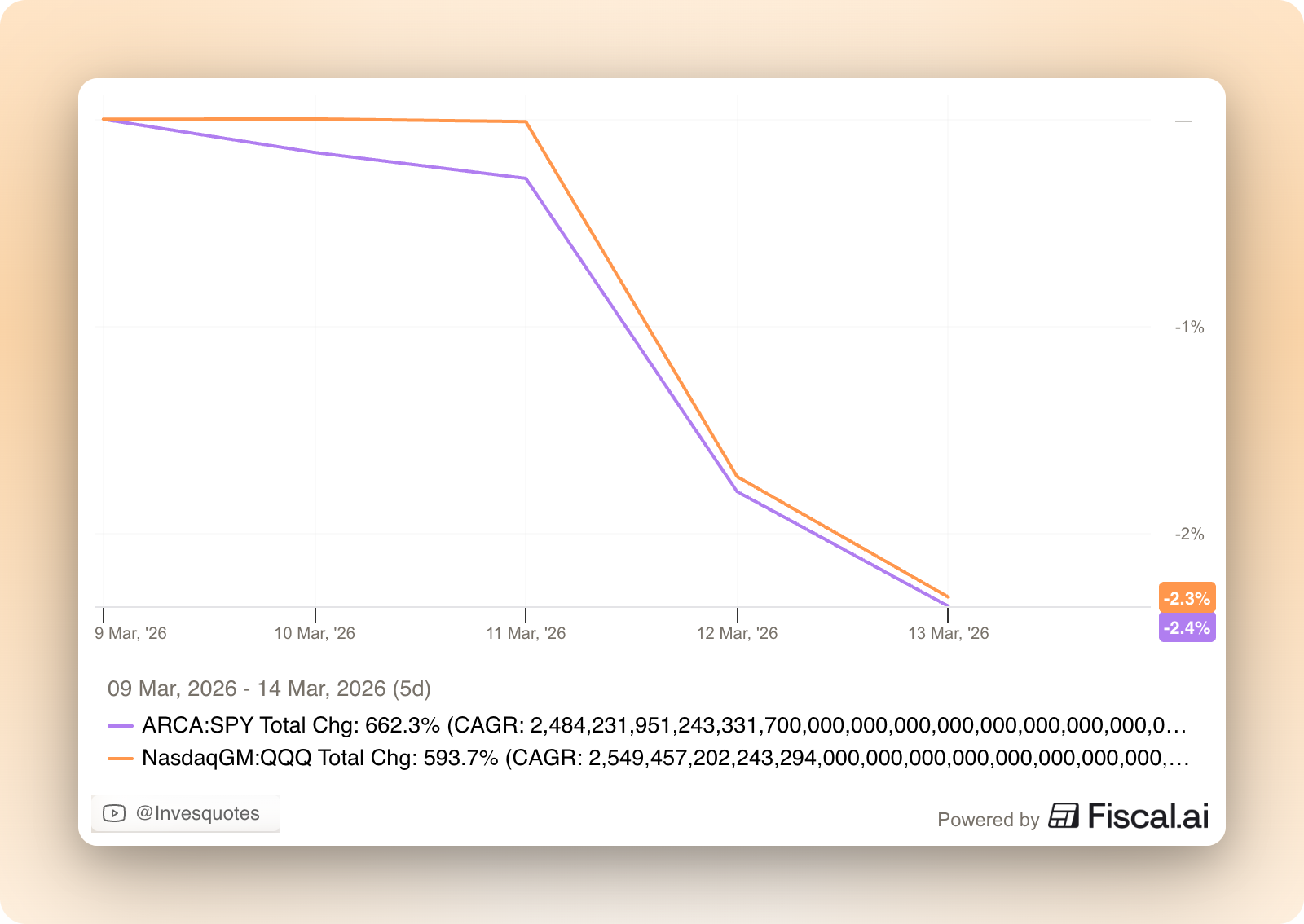 Knowing what will happen from now on is pretty much impossible, but 6.6% off ATHs surely does not seem like the drop we’d have if markets expect the conflict and its impact on oil prices to be long-lasting. I believe the market is sort of cautiously pricing in that the conflict will be short-lived, maybe supported by the fact that Trump has shown a tendency to care about markets (i.e., TACO). Now, TACO gained popularity during the Tariff tantrum, but I’d say tariffs were a self-inflicted wound and therefore solvable with just a “simple” shift (I should remind you, though, that many believe that it would be a structural impact). This situation honestly seems much more complex because it involves a war and many more players, meaning that it’s probably not solely Trump’s hands, at least not to the extent all the Tariff situation was (Ps#1: I don’t consider myself an expert on geopolitics so take everything here with a grain of salt. Ps#2: I don’t think anyone is an expert on geopolitics).