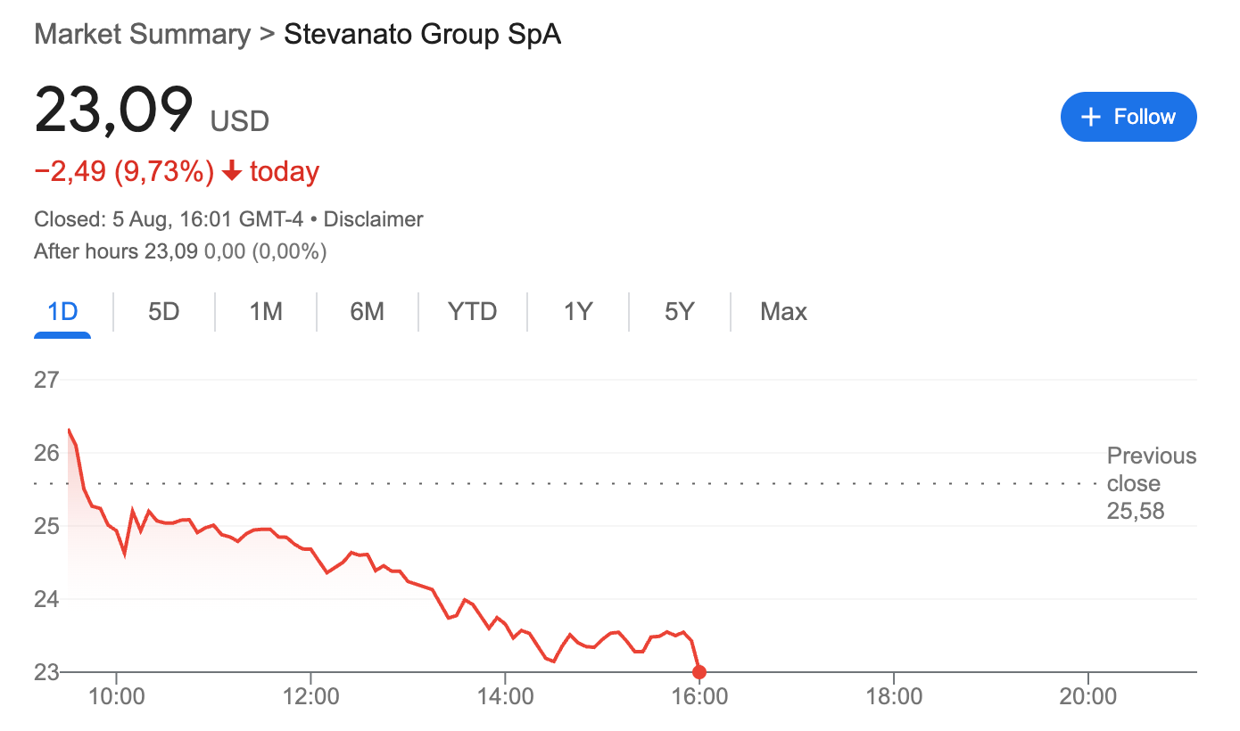 Stevanato reported earnings on Tuesday, and the market did not like these. The stock dropped almost 10% (albeit it recovered somewhat on Wednesday +4%):