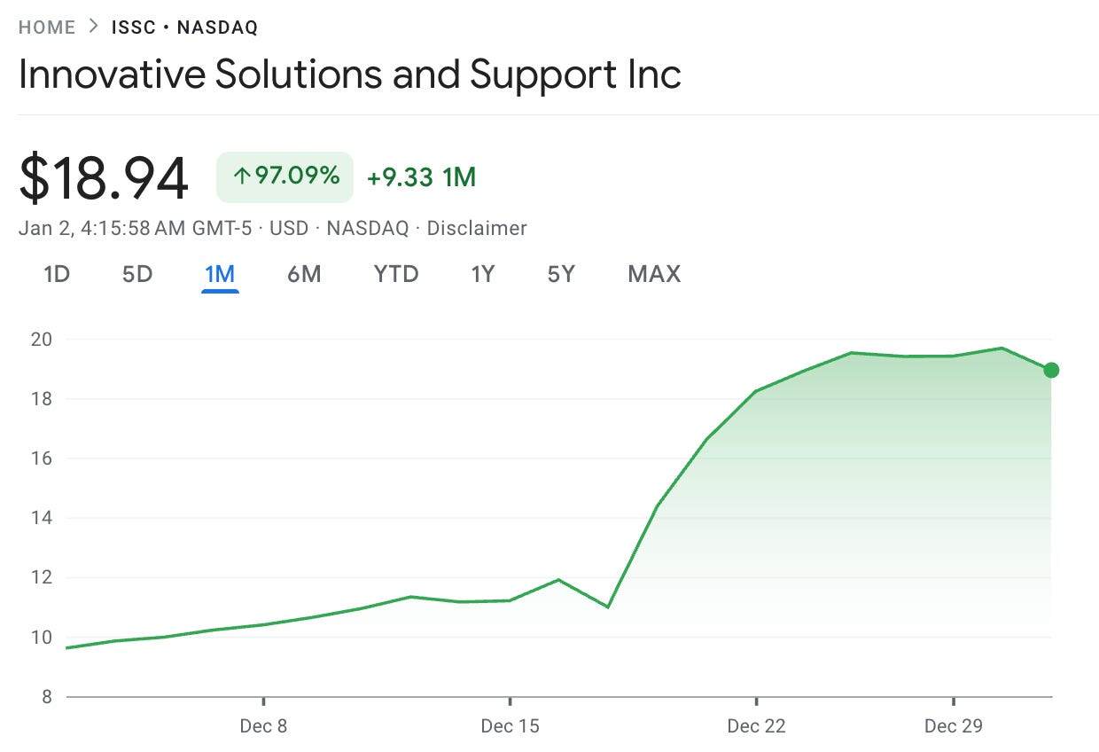 To end the year on a more frustrating note, at the end of November I started looking into a company called Innovative Aerosystems (ISSC). Despite not being the highest quality company I have ever encountered, it was the first time in many months that I was liking a lot of what I was seeing. Instead of buying a small position as I continued my research, I decided to finish it before, thinking that the stock would not skyrocket and that I might even get a better opportunity down the line. Turns out it did skyrocket!
