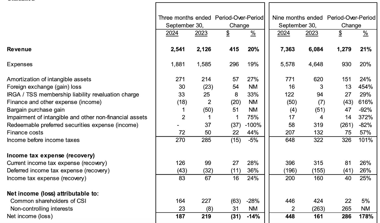 The positive side came from the redeemable preferred securities expense, which was absent this quarter but was $37 million in the comparable quarter. This expense is related to the Lumine spinoff and included primarily in non-controlling interests, so not really relevant for net income attributable to shareholders of CSI. Net income is always volatile for Constellation and has many puts and takes, so it’s better to focus on cash flows.