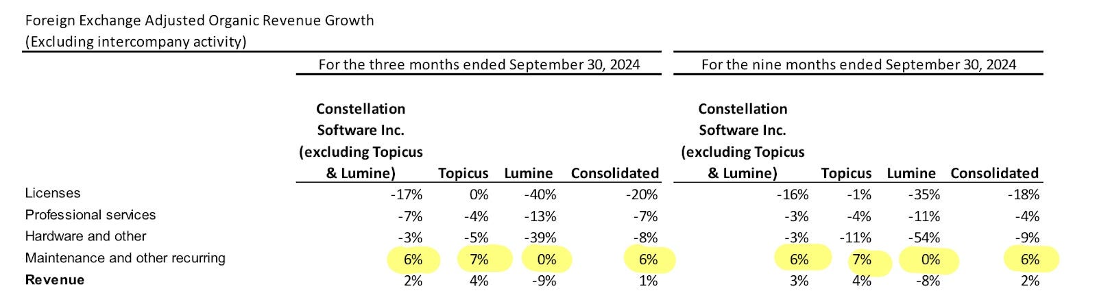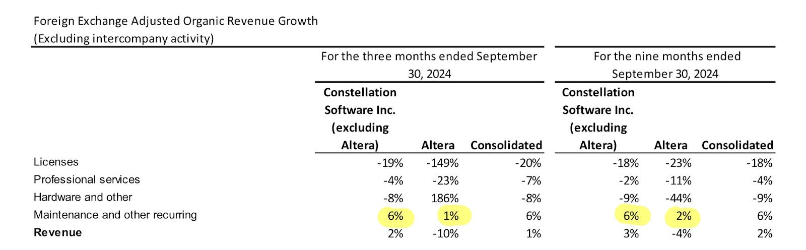As usual, management shared how Topicus, Lumine, and Altera impacted its organic growth profile. No news on this front this quarter. Lumine and Topicus did what they were expected to do. Lumine detracted from organic growth, whereas Topicus added to organic growth. To be honest, I find it pretty impressive that Constellation is not far off Topicus’ organic growth profile: