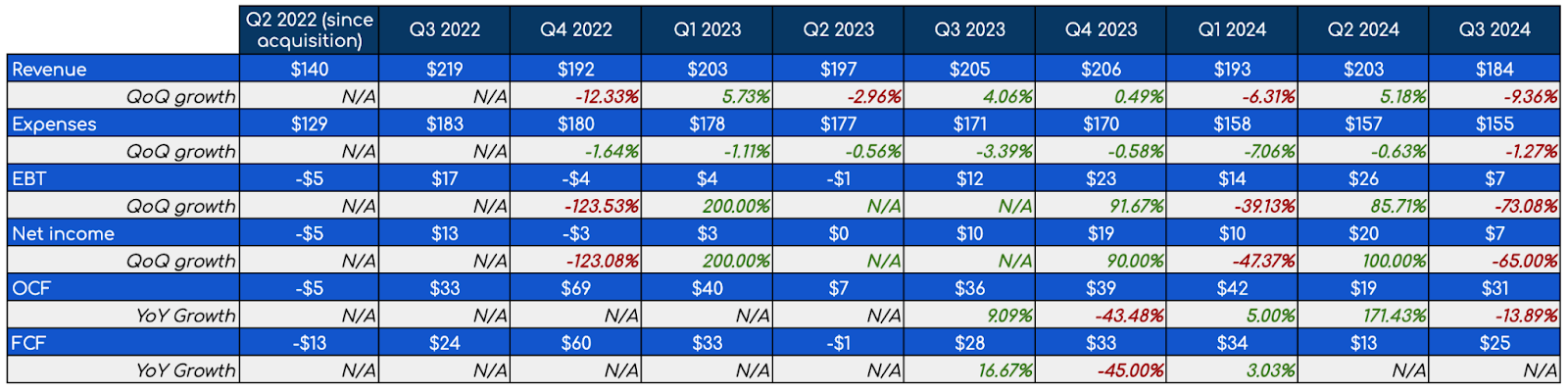 Altera is the vivid example of what I discussed earlier regarding margins. When Constellation acquired Altera, the company had a 16% operating margin. It was also a pretty significant acquisition, with $220 million in quarterly revenue at the time of acquisition. Since its acquisition, Constellation has expanded its operating margin to 19%. The impact on cash flows has been even more noticeable, which is what Constellation cares about. Since Constellation acquired it, Altera has generated $311 million and $211 million in Operating Cash Flow and FCFA2S, respectively: