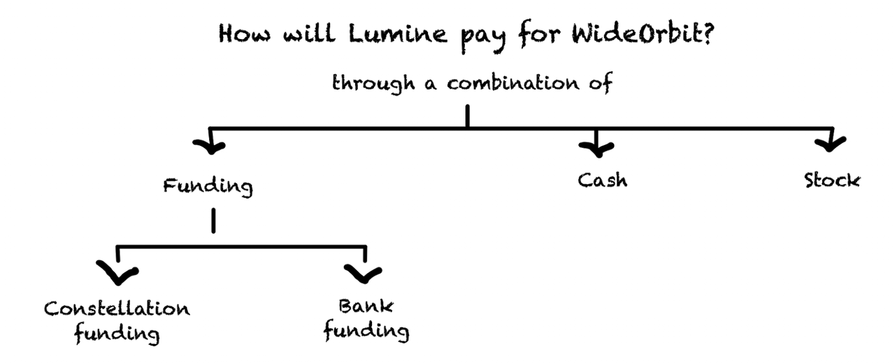 Lumine will pay $490 million as total consideration for WideOrbit, with the new company having a combined value of $1.6 billion. The company will pay this amount through a combination of debt, cash, and stock: