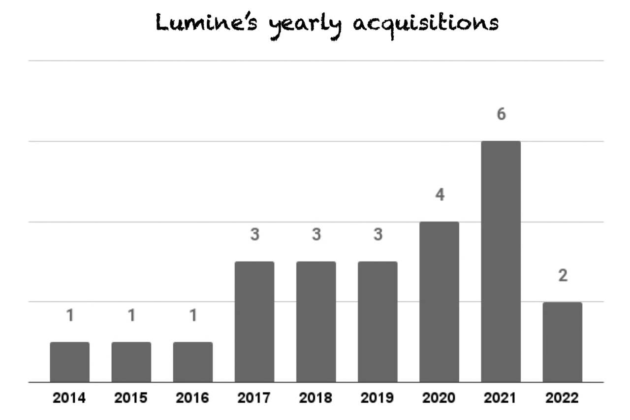 Back in 2014, Lumine was making one acquisition per year, with 2021 being a record number on this front with 6 acquisitions:
