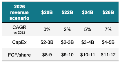 I have absolutely no visibility around the second, so let’s just assume the 35% ITC. A 35% ITC results in net capex (midpoint) of $1.6 billion before any grants. Operating Cash Flow in 2025 was $7.15 billion. Let’s assume this grows 10%-12% next year (ignoring any working capital benefits, just from pure revenue growth), resulting in Operating Cash Flow of around $8 billion. Both things result in Free Cash Flow of $6.4 billion. This means that, after growing 94% in 2025, we could expect FCF to maybe be up triple digits in 2026 (again, assuming no grants are received). This would result in around $7 of FCF per diluted share in 2026, which is below management’s low-end scenario: