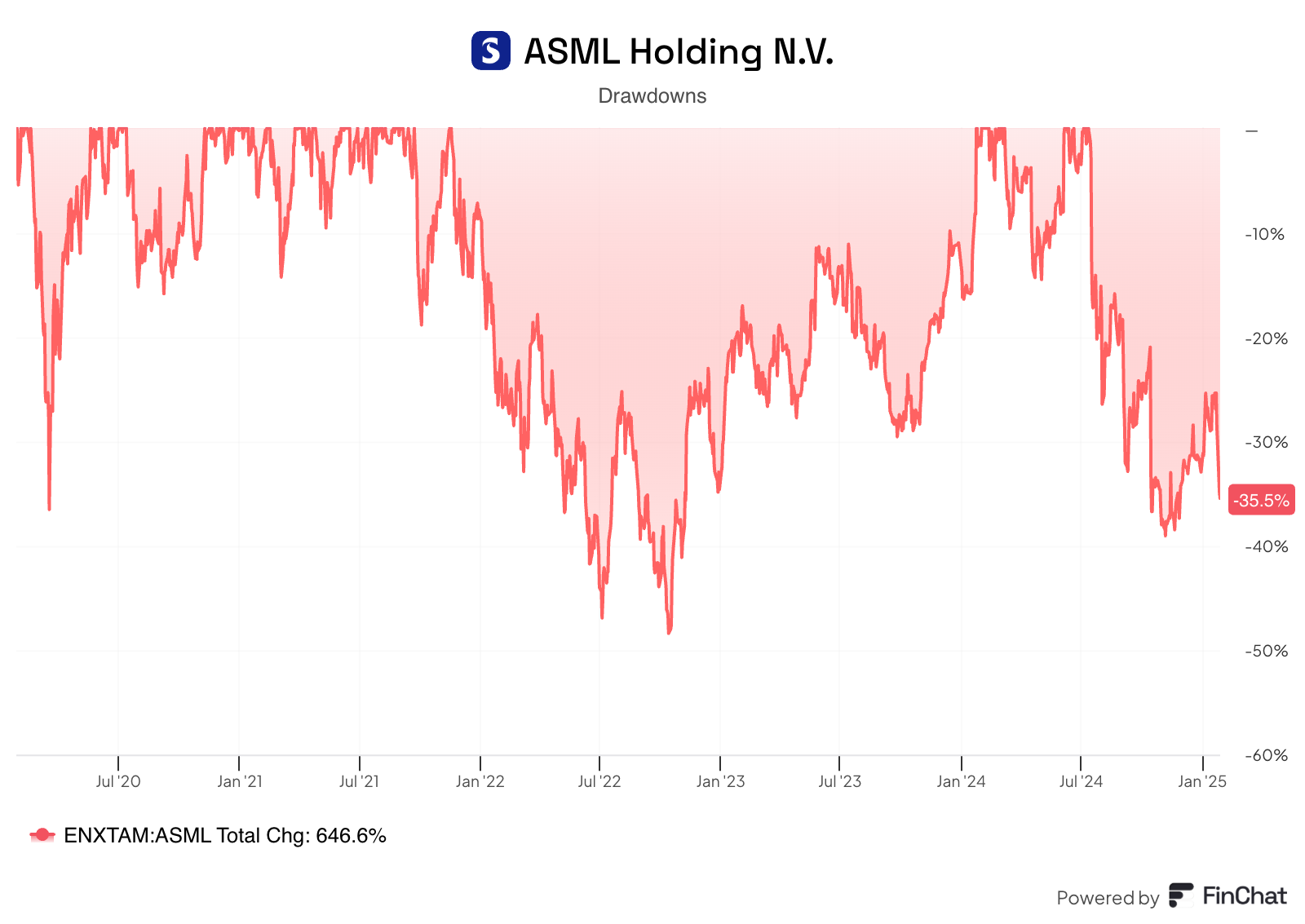 What seems to be out of the question at this point is that ASML will deliver something above the low end of the newly issued guidance, especially since the guidance includes the new export restrictions issued in December. We must be aware that these export restrictions were pre-Deepseek, a development that might bring a new wave of export restrictions (this is just pure speculation at this point). Another way of interpreting this is that Deepseek might actually lead to fewer restrictions and more domestic investments by the US to stay ahead. China is already retracing to a more normalized portion of ASML’s revenue due to these restrictions, something that’s expected to continue in 2025 and that is also considered in management’s guidance.