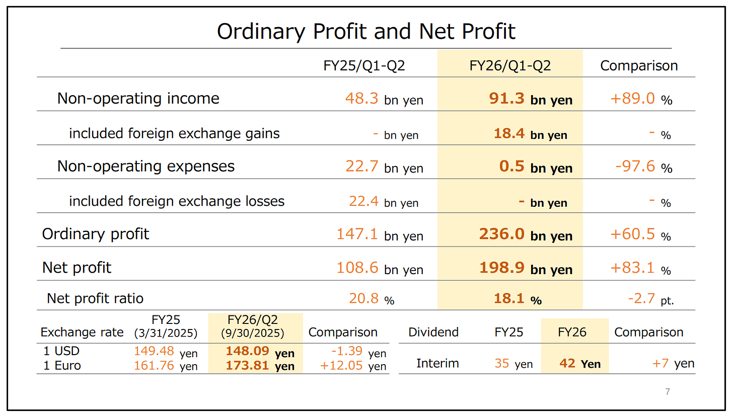 Nintendo had foreign exchange gains during the first half vs losses in the comparable period last year, and experienced an increase in its share of the profits of participated entities