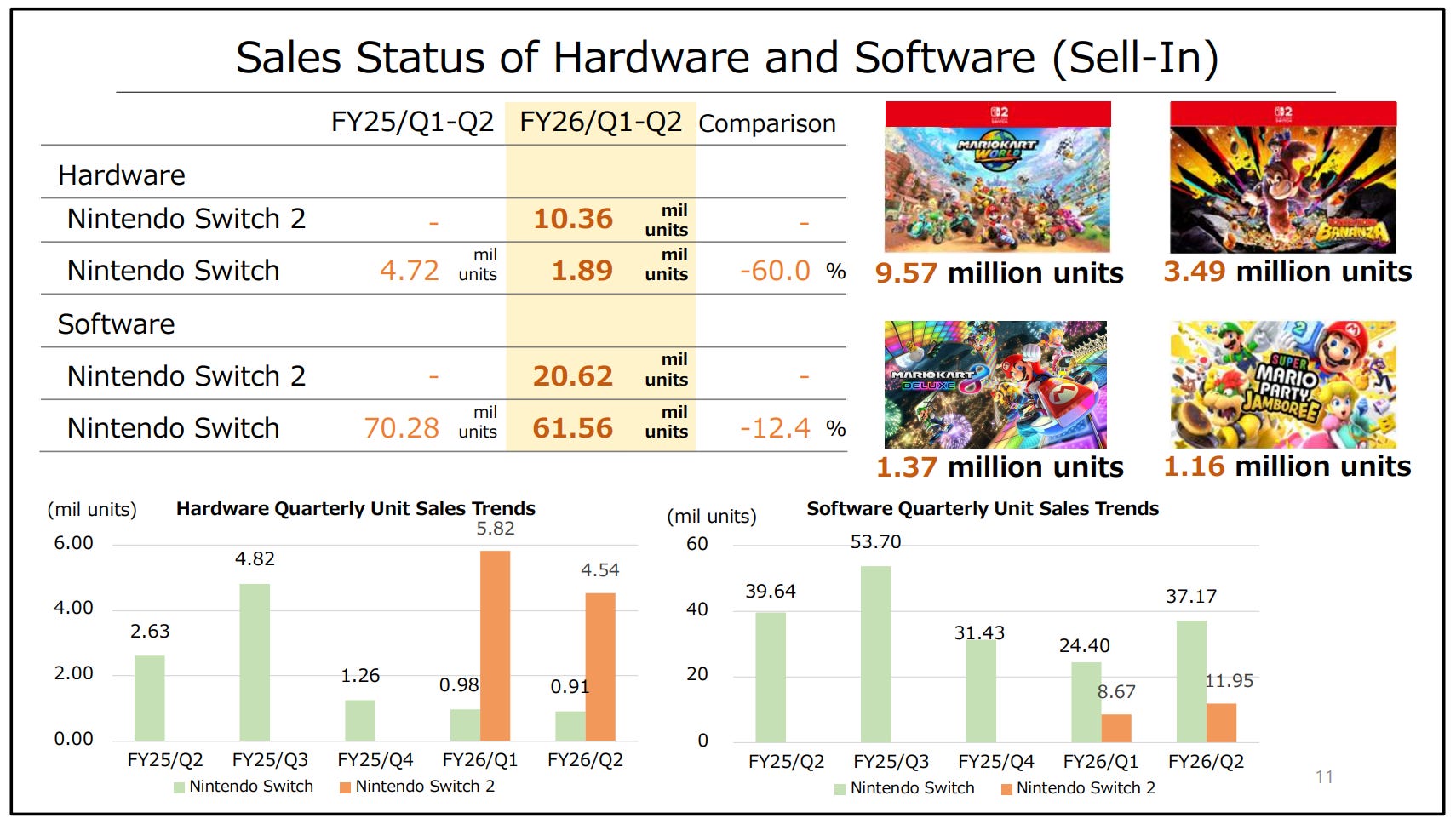 Nintendo has sold more than 10.3 million SW2 in just two quarters (4.54 million in Q2 alone). These sales have come with 20.6 million in software unit sales, for a tie ratio of pretty much exactly 2:
