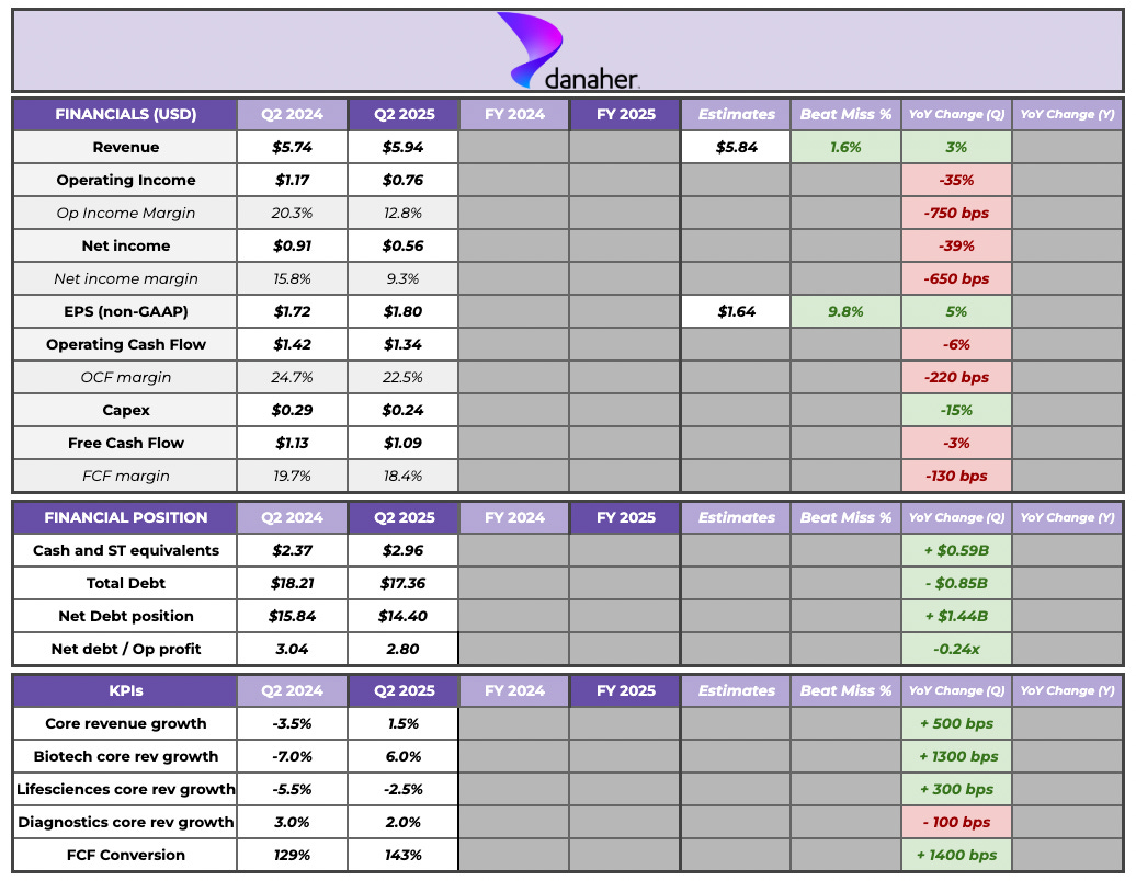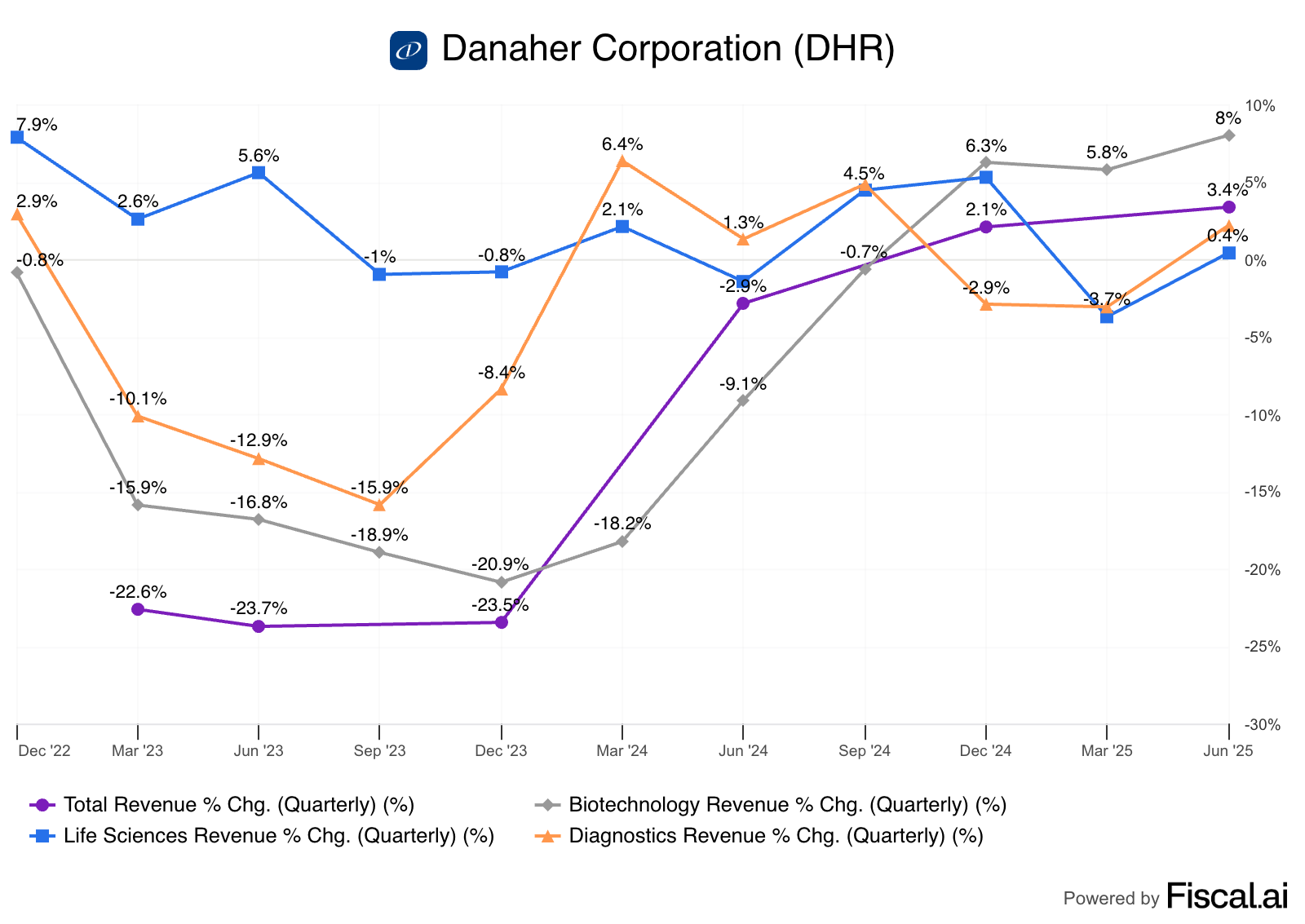 This ultimately means that repurchases are no longer a “reason” to sandbag, so what’s going on? Danaher also announced this quarter that the current CFO is retiring and will be replaced by the CFO at LifeSciences. Being new to his role, I can see why he would not like to set the bar high. Danaher also claimed that they would provide early commentary on how 2026 is shaping up in the Q3 earnings call (October). This might also be related to the new CFO coming on board because sharing thoughts on the next year is not something that Danaher typically does in Q3.
