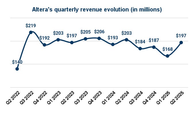 After a poor quarter by Altera in Q1, the business bounced back in Q2. Altera generated $197 million in revenue, growing 17% sequentially despite the company experiencing a 4% sequential drop in expenses: