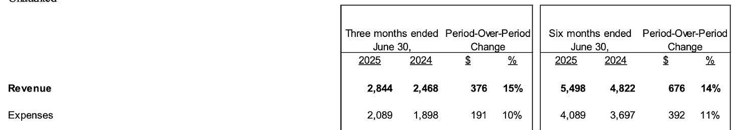 Constellation reported pretty good numbers in Q2, with the highlight probably being organic growth and margin expansion. Let’s start with the latter. Revenue grew 15% in Q2, but Expenses only grew 10%, meaning that Constellation experienced strong operating margin expansion (this was also true for the first six months of the year):