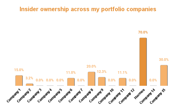 Every time I write an investment-related article, I like to see how my portfolio scores (when applicable) against what I’ve discussed. There are currently 15 businesses in the portfolio. The average insider ownership (note that strategic shareholdings is a more ample term than just shareholders), stands at around 12%, ranging from 70% down to 0% (not really 0, but negligible). This basically means that if an index holds the positions in my portfolio, they would most likely be underweight by around 12% compared to peers with no strategic shareholdings: