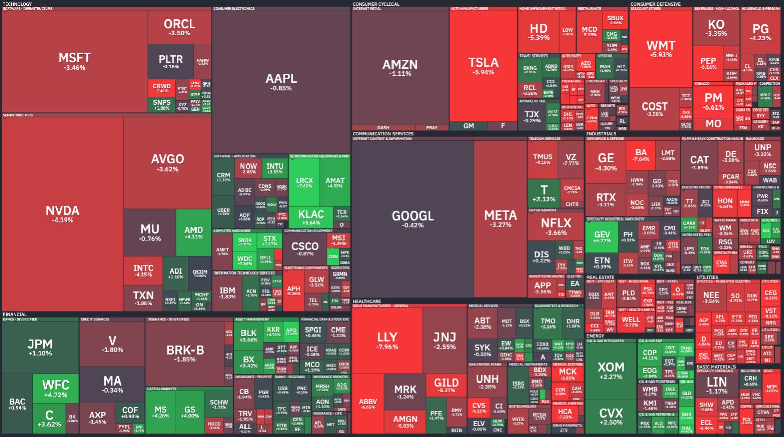 The industry map was mostly red this week: