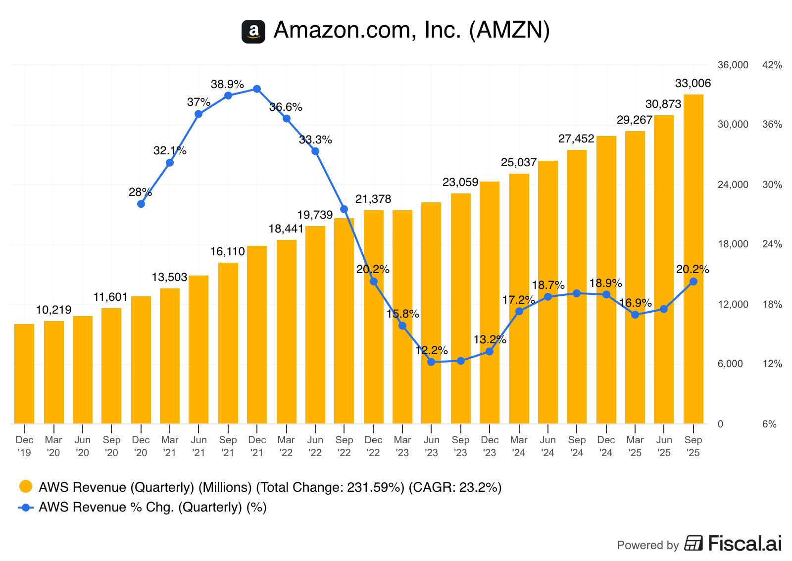Let’s now look at the different segments, starting with what is probably driving the current market reaction: Amazon Web Services (AWS). Many (like SemiAnalysis) had projected that AWS would accelerate, driven by Anthropic; this did happen, but to a greater extent than many had envisioned. AWS grew 20.2% in Q3, accelerating almost 300 bps sequentially and posting its strongest growth since Q4 2022!