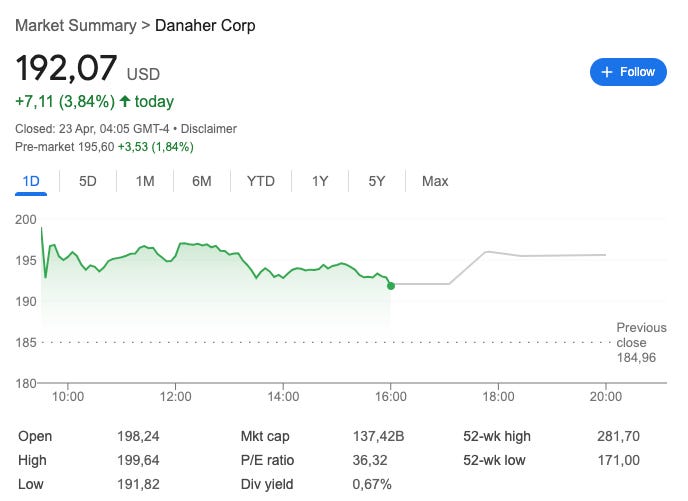 It’s tough for a stock to completely decouple from the market’s performance if the latter does poorly. That said, it’s always much safer to own resilient businesses like Danaher when uncertainty is so high. For me, companies like Danaher or Stevanato are sleepwell investments in a tariff and recession-driven world, and it’s why both are currently top 5 positions for me.
