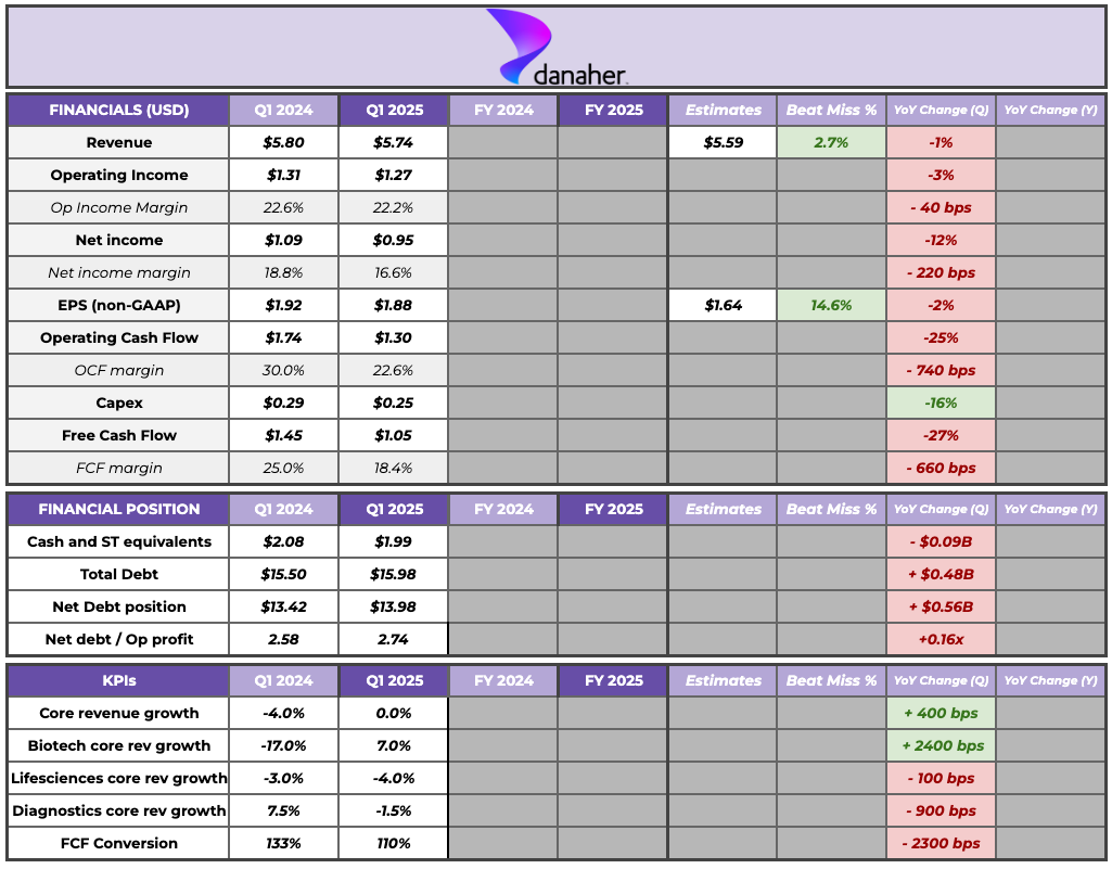 The best news of all is that there are still approximately 12 million shares outstanding in the buyback program. This is great because Danaher is expected to remain cash generative through all the tariff mess, so it’s likely it’ll get the opportunity to repurchase more shares at attractive prices. The remaining 12 million shares are also potentially the reason why the full year guide was not raised on the face of a better bioprocessing performance: they still might be repurchasing shares this quarter!