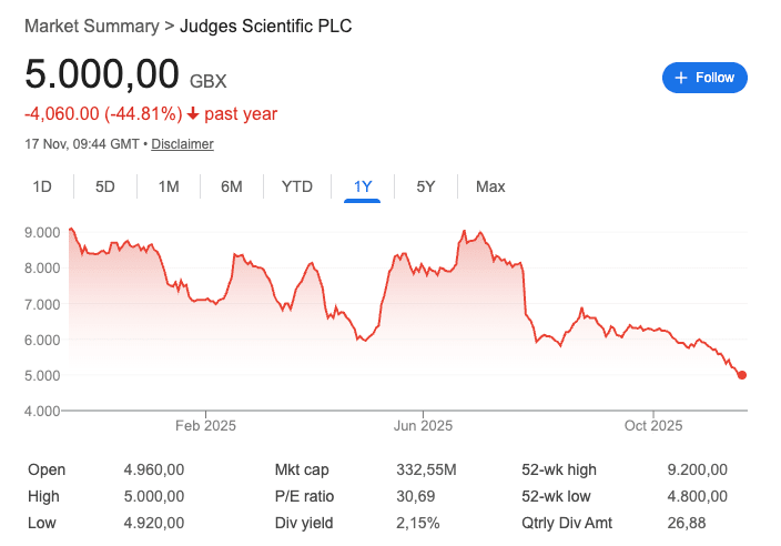 You might have noticed that Judges’ stock is considerably down over the past few months. Despite already being somewhat cheap at the beginning of the year, the stock has taken an additional 45% haircut: