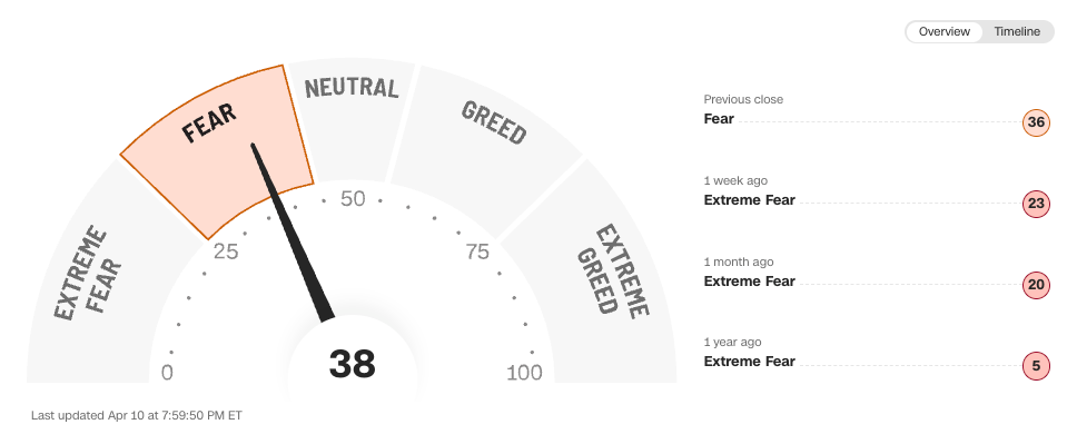 The fear and greed index improved notably with the “resolution” of the conflict: