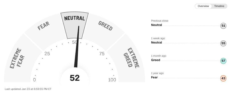 The fear and greed index retraced to neutral territory, although I must say certain things in my portfolio are closer to extreme fear: