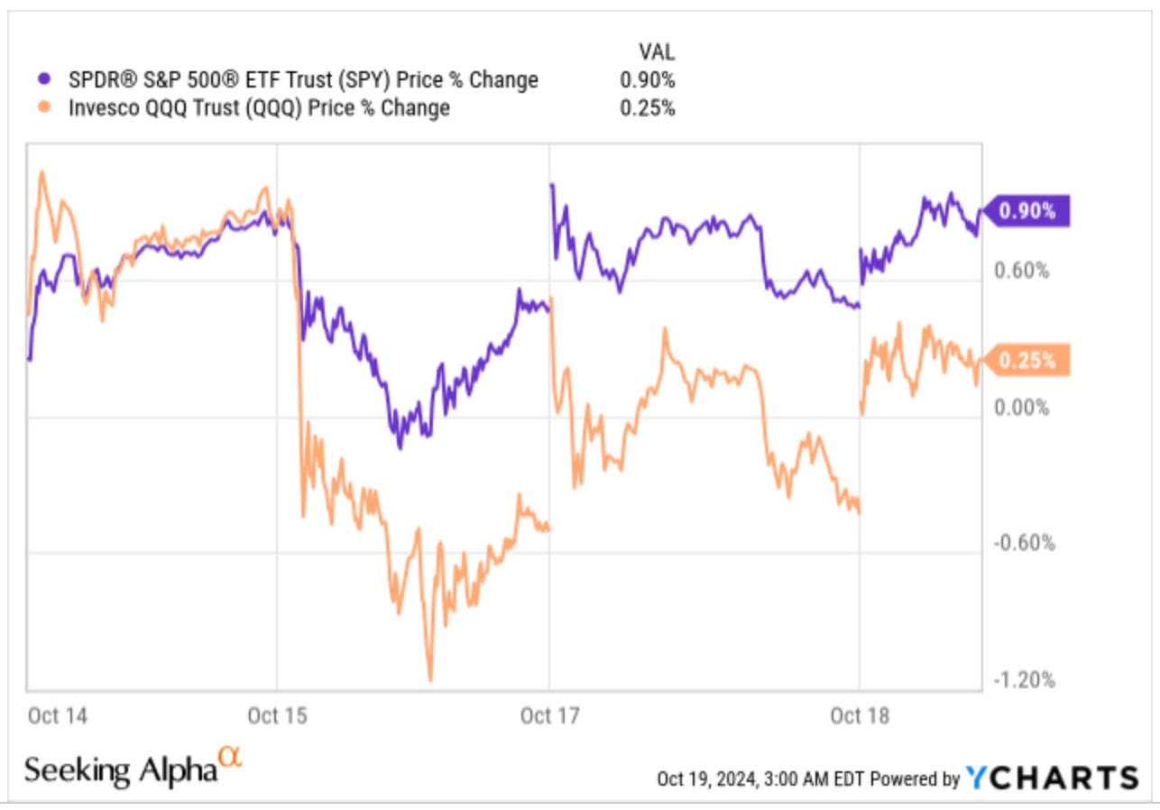 The reason behind the volatility might be something I’ve talked about this week: ASML’s earnings. The company’s earnings leaked one day ahead of schedule and took the market by surprise with very weak bookings and a downward revision in guidance. As ASML is one of the most critical players in the chip industry, many tech stocks suffered, which was probably why we saw a divergence between the performance of the S&P 500 and the Nasdaq this week (remember that the Nasdaq is more “tech” heavy).