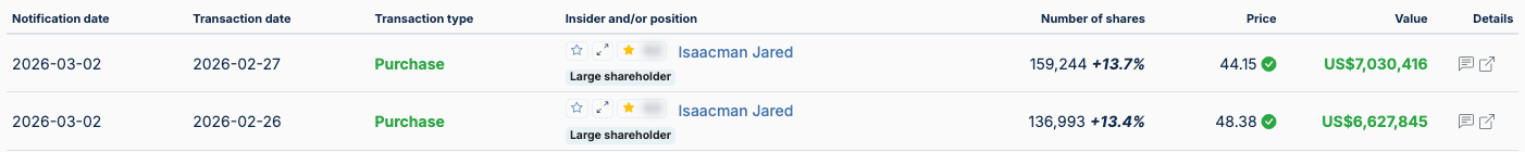 Just as I was writing this I saw that Jared Isaacman, Shift4’s founder, made an open market purchase worth around $13 million after the post earnings drop: