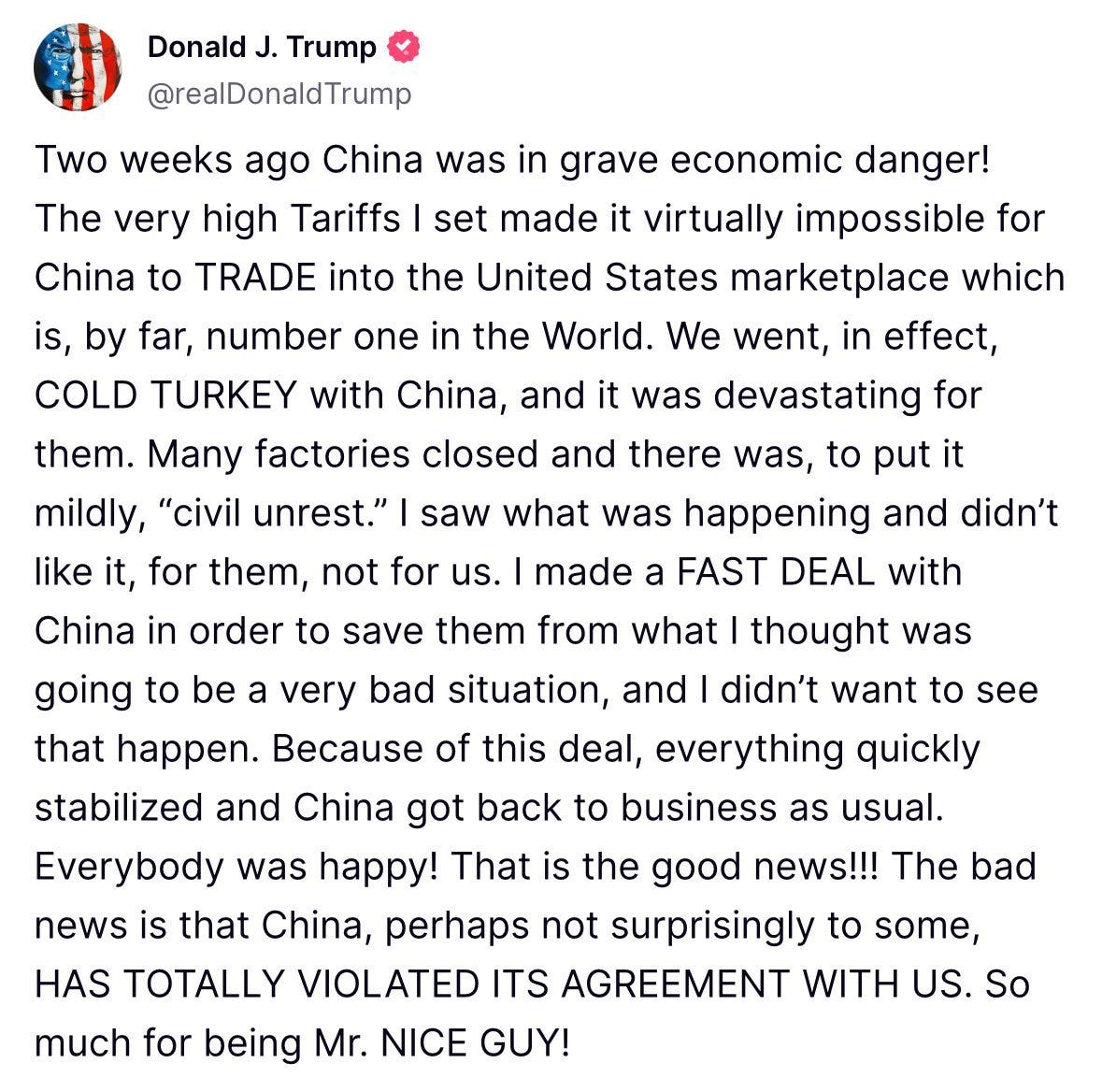 A reporter asked Trump on Thursday (I think it was on Thursday) about what he thought about his new nickname: TACO. TACO stands for ‘Trump Always Chickens Out,’ and it was given to Trump due to his strategy around tariffs. As Trump is an individual with a large ego, investors began to think that making him aware of this nickname would become the beginning of a new tariff rant — and they were not wrong! On Friday, Trump accused China of violating the Trade agreement with the US: