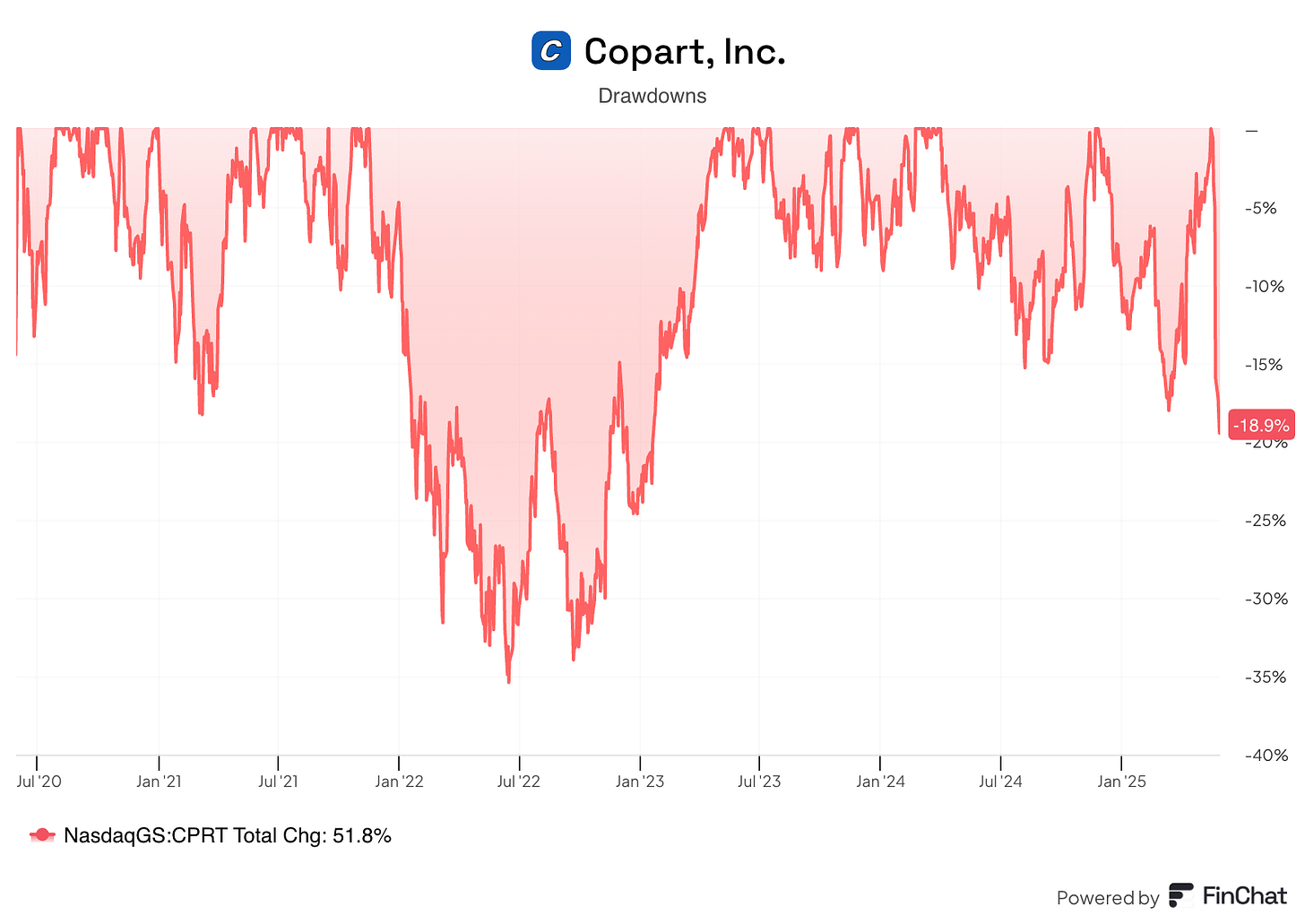 I am not used to saying this for Copart, but the company reported a relatively poor quarter. The market also didn’t seem to be accustomed to this and heavily punished Copart, with the stock dropping more than 11% on Friday:
