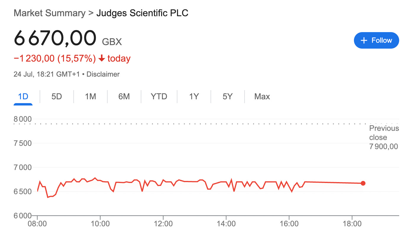 Judges published its H1 2025 trading update this week, and it was pretty terrible. The stock dropped significantly post-release, and even though sometimes we might say that such sharp drops are market inefficiencies or whatnot, I must say that it was a pretty deserved market reaction this time: