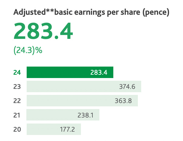 As a result of these headwinds coupled with the aforementioned business-specific issues, the Board now anticipates delivering Adjusted basic earnings per share of between 285p and 330p per ordinary share in FY25 which is below market expectations.
