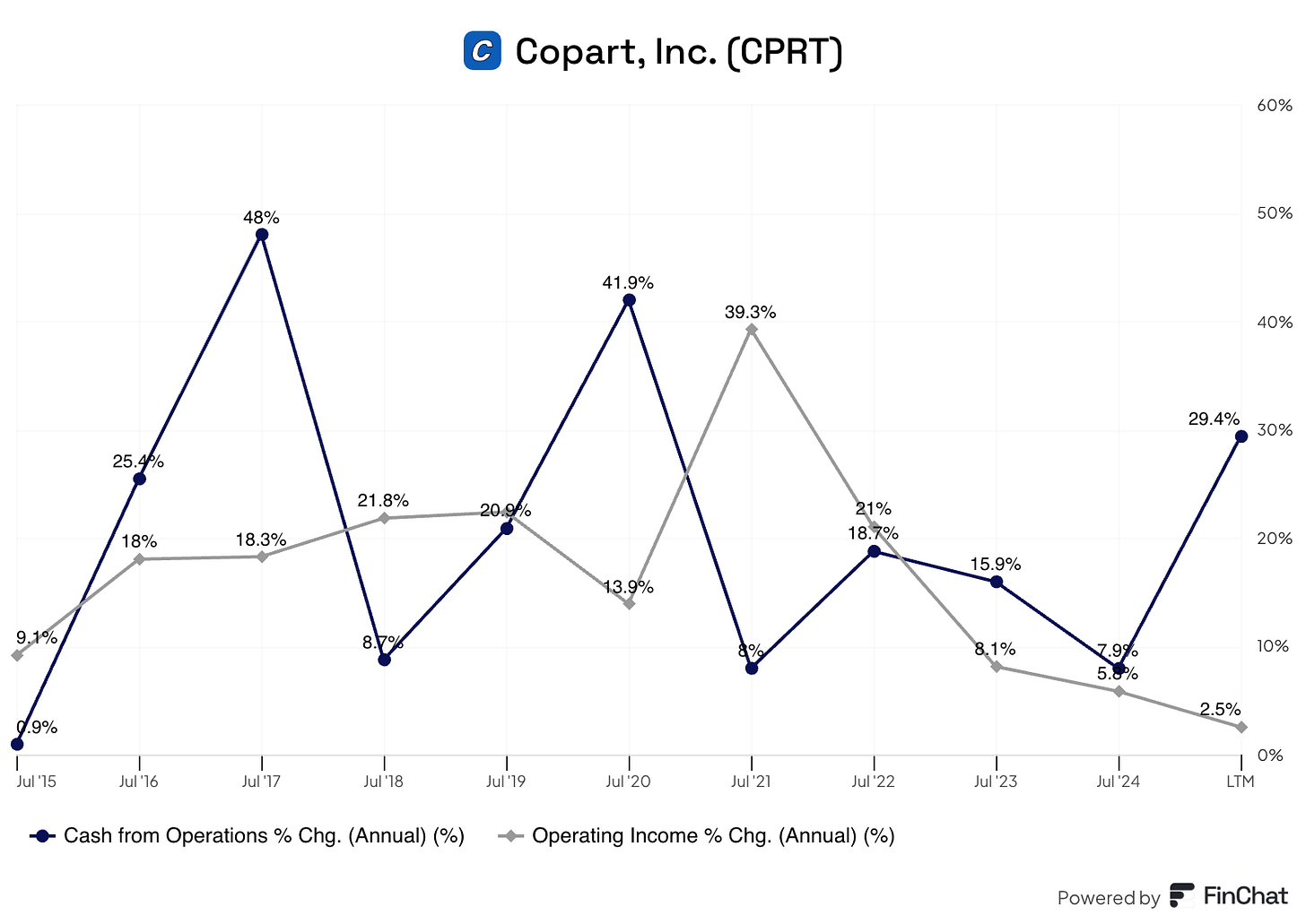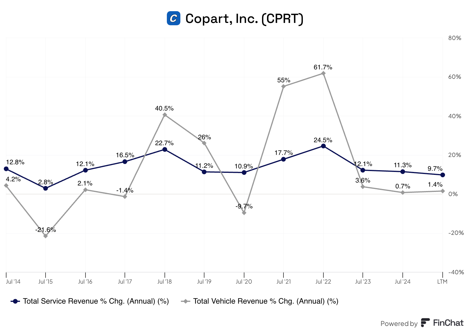 Copart continues to grow at a pace that few expected it to (myself included). If you were to go back in time to 2017 when Copart was growing at a 14% clip and were asked to forecast the growth in 2025… it’s improbable you would’ve arrived at the 14% figure Copart reported in Q2.