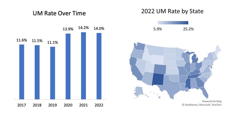 While Copart’s management alluded to this being a consequence of the current macro just like in 2010, I believe it has more to do with insurance rates than the economy at large. Vehicle insurance rates have risen more than 50% since 2020, precisely the moment when the uninsured motorist population started to rise: