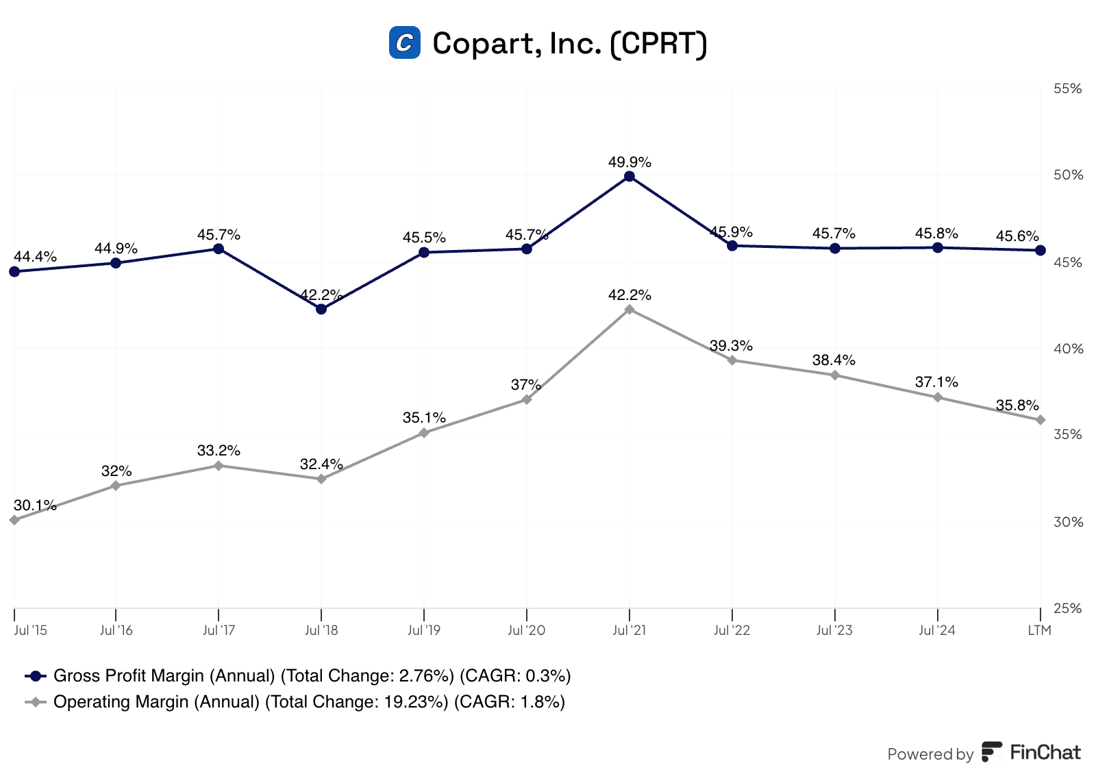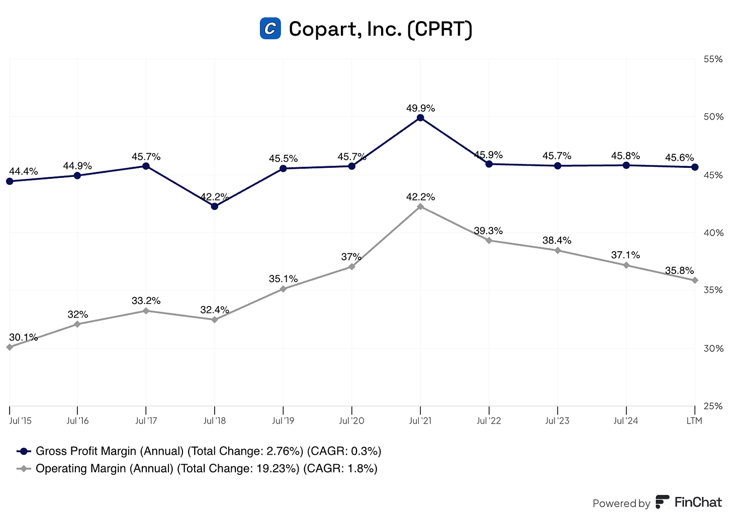 While I don’t know to what extent margins are lower than they should be, there’s no denying that Copart is not enjoying its full margin potential.