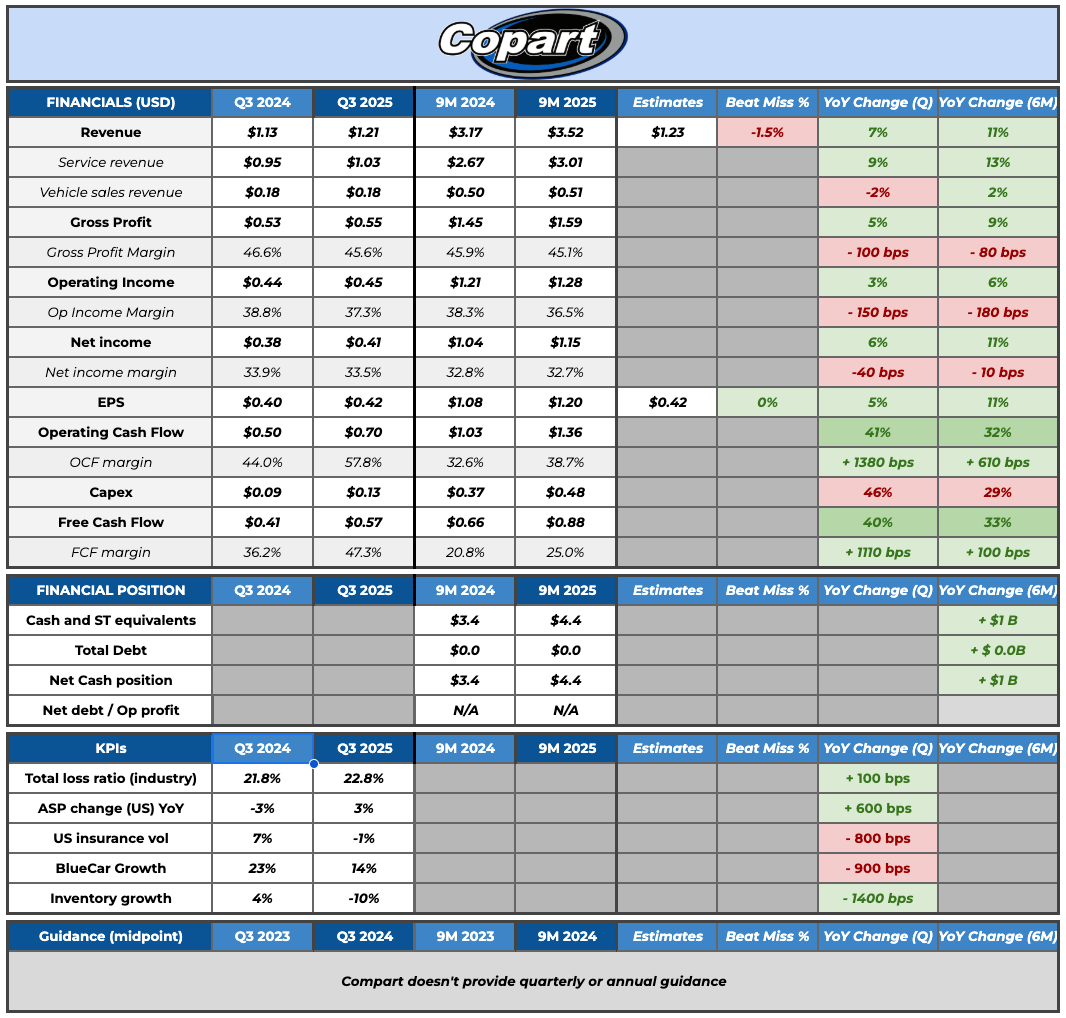 Copart has grown investors accustomed to not having many red figures in the summary table, but this was not the case this quarter. I have decided to focus this article on three main topics:
