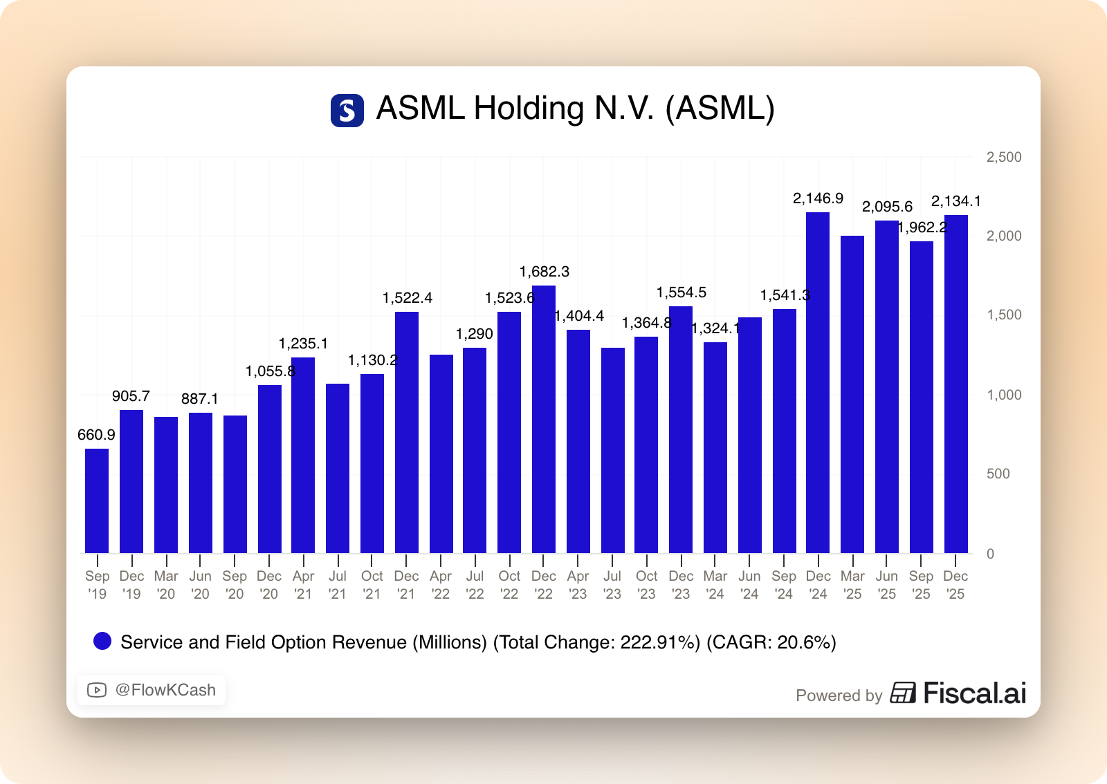 This meant that one could theoretically hold both views simultaneously while on the surface appearing to be correct. This “no man’s land” trickled down into ASML’s IBM (Installed Base Management) sales, which shot up pretty significantly in 2025 while orders were “below expectations:”