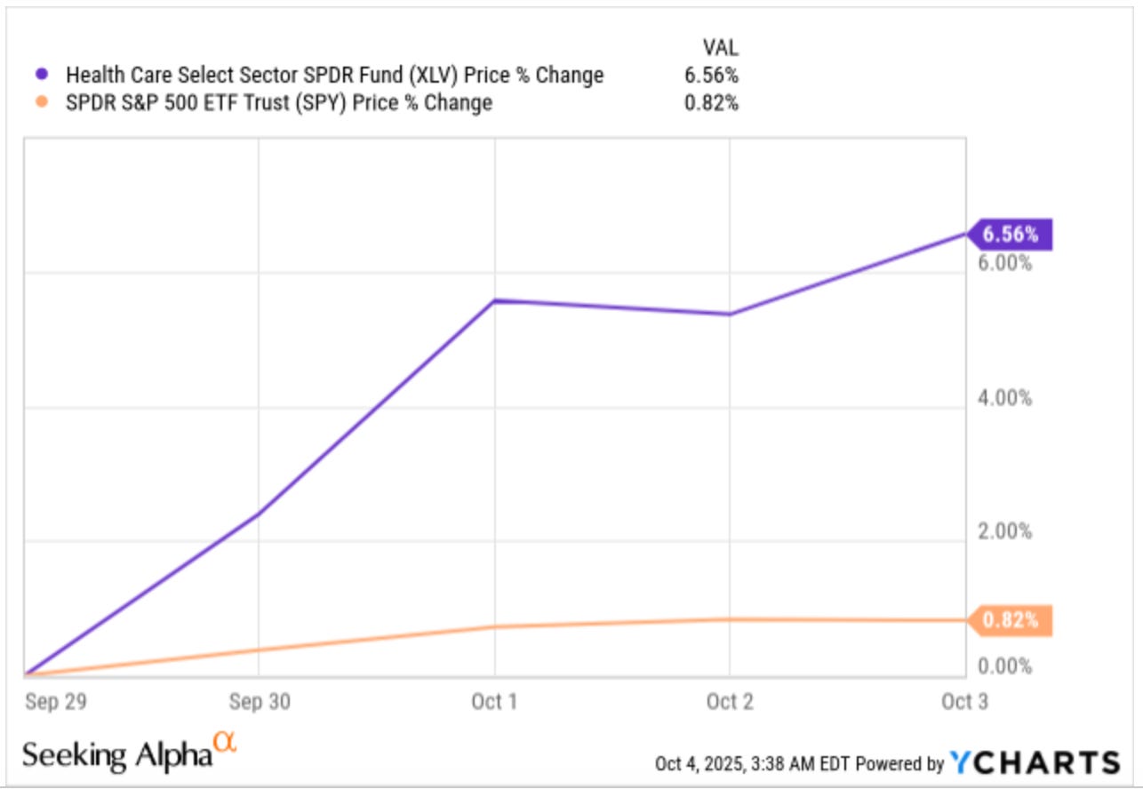 If you’ve read my work before you know that I am not a fan of #2, not because it’s not profitable (it is) but because it’s very tough to get it right (who thought ASML would be up 40% in a month?!). This is why I buy and wait (although being too early can cost a lot of money so it’s also something to have in mind). The XLV (a healthcare ETF) significantly outpaced the indices this week: