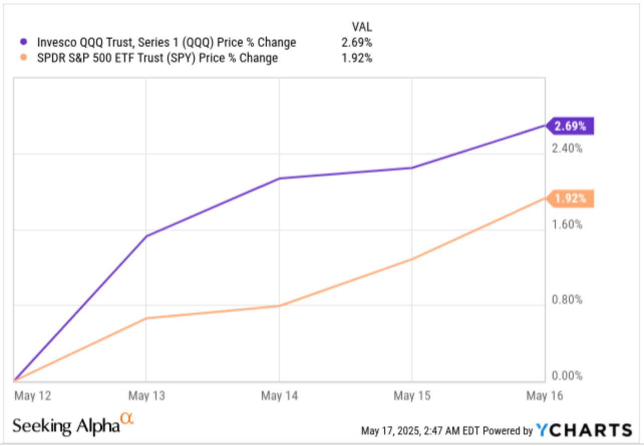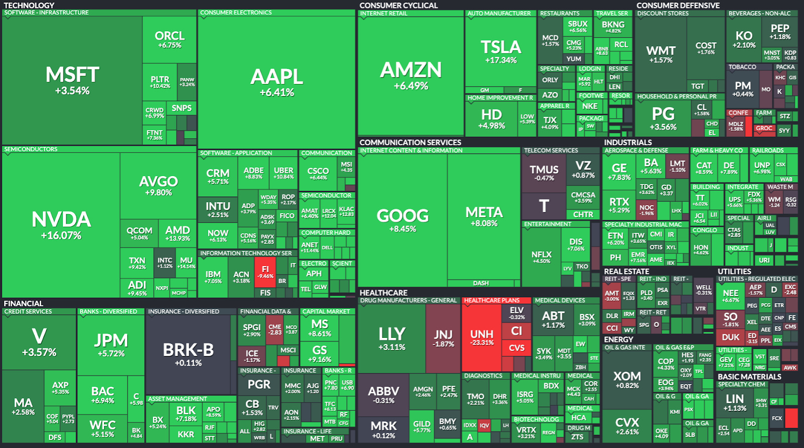 The market was up again significantly this week. The Nasdaq rose almost 3%, whereas the S&P 500 rose almost 2%: