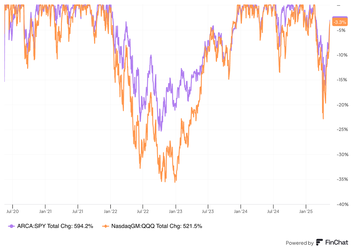 Both indices are now barely down from highs (around 3%) despite all that has happened over the past few months: